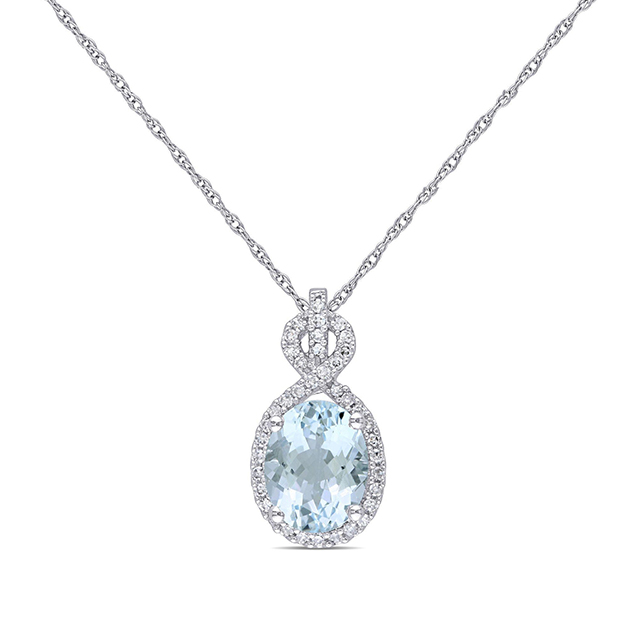 蓝色椭圆形钻石项链